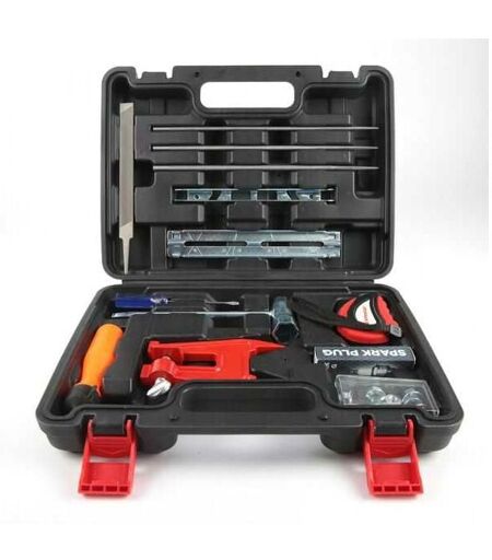 Mallette à outils pour affûtage chaîne tronçonneuse Kerwood Comprenant 21 accessoires : Tournevis à tête plate Clé en T Bougie d'allumage Archer A958 (correspondance NGK : BPMR7A, Champion : RCJ7Y) Etau pour souche Mètre ruban Ecrous de guide Gabarit pour lime Poignée de lime Lime plate Limes rondes : 4 mm - 4,8 mm - 5,5 mm ...