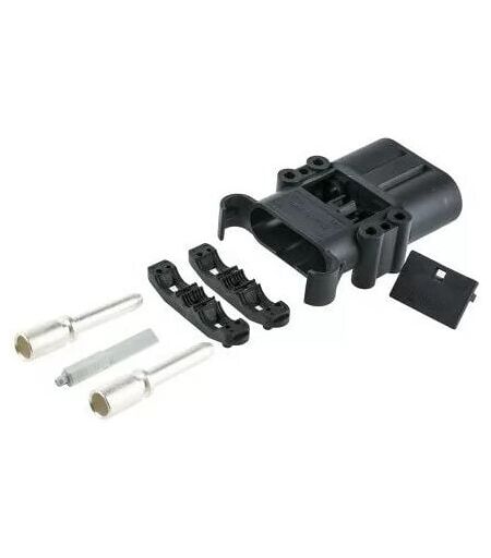 Connecteur pour courants élevés. Système de connecteurs spécialement conçu pour les chariots électriques. Les connecteurs sont fournis avec des contacts à souder, un serre-c‚ble, des vis de montage et une clé de polarisation. La clé de polarisation peut être utilisée dans 6 orientations différentes selon les besoins. La tension est alors affichée via le boîtier pour connecteur (24 V, 36 V, 48 V, 72 V, 80 V, 96 V). Choix d'intensité de courant de 80 A ou 160 A. ...