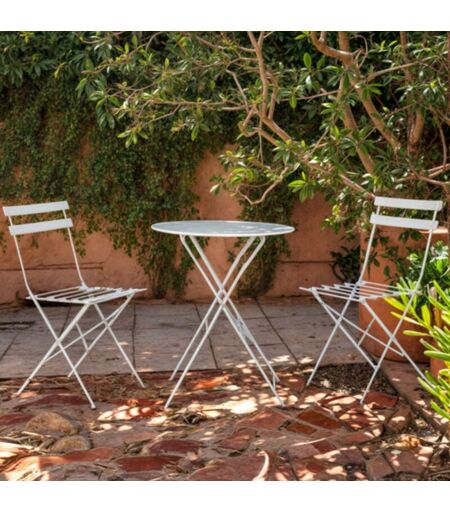 Avril Paris - Table et chaises pliantes bistrot balcon terrasse- 2 places - Blanc - flore