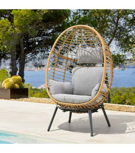 Avril Paris - Fauteuil oeuf inclinable en résine tressée - Gris naturel - yogi - yogi