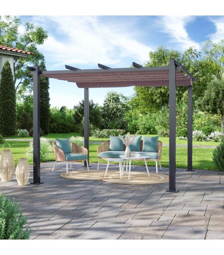 Avril Paris - Tonnelle/Pergola aluminium 3x3m toile coulissante rétractable - Gris Taupe - hero