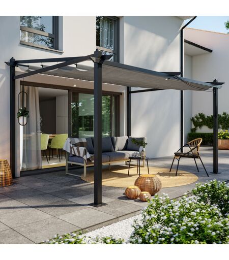 Tonnelle/Pergola mural en aluminium AVRIL PARIS Lisboa - 3x4m - Toile coulissante rétractable - Gris