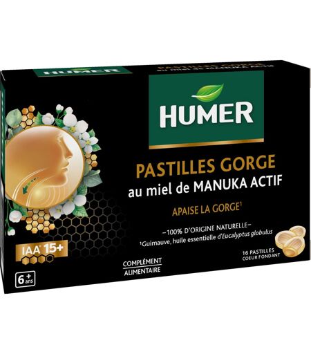 Humer Pastilles Gorge Miel De Manuka Actif IAA15+ 16 Pastilles