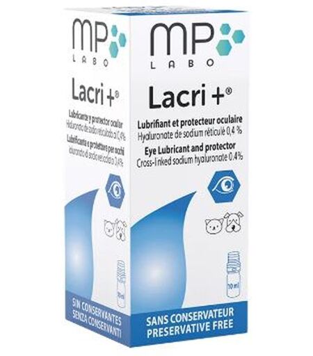 Lacri+® est une solution oculaire qui lubrifie, hydrate et protège la surface oculaire. Il est formulé sans conservateur, pour une meilleure tolérance.Le hyaluronate de sodium réticulé apporte une meilleure rémanence sur la surface oculaire, ainsi qu’une meilleure lubrification et hydratation.La stérilité de Lacri+® est assurée par un système de valve anti-retour, qui empêche les contaminations.BénéficesLacri+® peut s’utiliser :Pour ses actions multiples sur le film lacrymal : il améliore sa qualité et sa stabilitéEn complément de la prise en charge du syndrome de l’œil secEn complément de traitements médicaux favorisant la régénération cellulaire.Ingrédients actifsHyaluronate de sodium réticulé : 0,4 %Sans conservateurMode d'emploiEnlever la bague d’inviolabilité avant la première administration.Oter le bouchon protecteur.Retourner le flacon et exercer une légère pression sur le corps du flacon pour instiller 1 à 2 gouttes dans chaque œil de l’animal 2 fois par jour, ou suivant les indications de votre vétérinaire. Eviter tout contact direct de l’embout avec l’œil ou la peau de l’animal. La pression à exercer sur le flacon peut augmenter au cours de l’utilisation.Refermer le flacon avec le bouchon protecteur.A utiliser dans les 3 mois après ouverture. ...