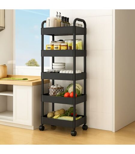 DECONATION Desserte à roulettes noire Chariot de cuisine roulant 5 niveaux h 139 x l 41 x p 28,5 cm Etagère toutes pièces - Livraison gratuite
