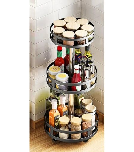 Deconation - Etagère rotative multirangements h 57,5 cm x d 26 cm : épices, boîtes, flacons Support rond 3 niveaux Noir - Livraison gratuite
