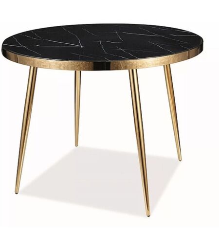Deconation - Table ronde effet marbre 'Calvin' - Noir/Doré - d 100 x h 75 cm - Livraison gratuite