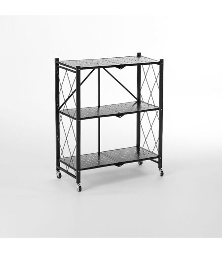 DECONATION Bibliothèque Métallique Pliable 3 niveaux à Roulettes - Noir - Rangement pratique - l 71,5 x p 30,5 x h 87 cm - Livraison gratuite