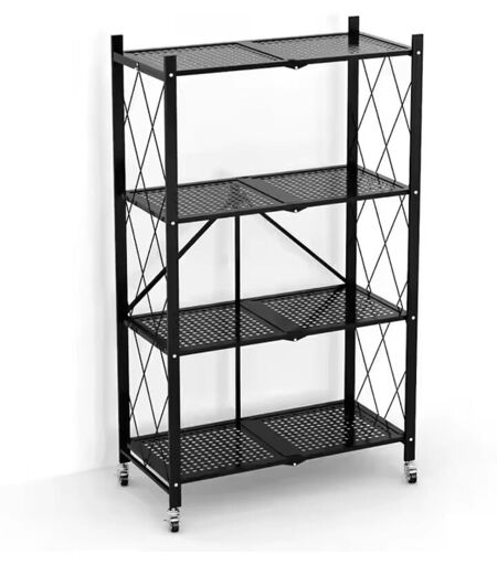 DECONATION Bibliothèque Métallique Pliable 4 niveaux à Roulettes - Noir – Rangement pratique 71,5 x 30,5 x h 127 cm - Livraison gratuite