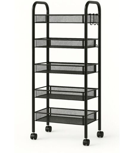 DECONATION Resserre Métallique Rectangulaire 5 Niveaux à Roulettes - Noir - Desserte de Rangement - l 39 x p 23 x h 96 cm - Livraison gratuite
