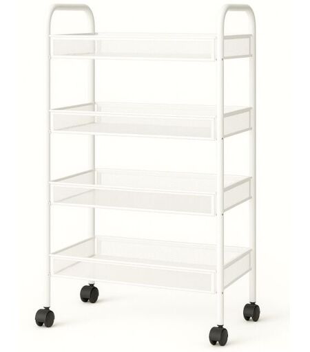 DECONATION Resserre Métallique Rectangulaire 4 Niveaux à Roulettes - Blanc - Desserte de Rangement - l 39 x p 23 x h 77 cm - Livraison gratuite