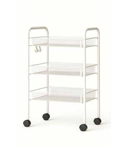 DECONATION Resserre Métallique Rectangulaire 3 Niveaux à Roulettes - Blanc - Desserte de Rangement - l 39 x p 23 x h 57 cm - Livraison gratuite