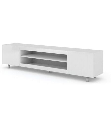 DECONATION Meuble TV Kate avec 2 portes + 2 niches en bois avec LED - Blanc - L 189 x P 37 x H 45 cm - Livraison gratuite