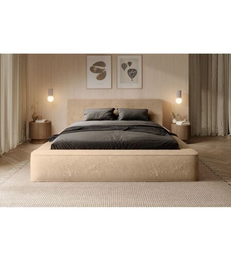 Meublorama - Lit coffre orlane – Beige Poudre de miel polaire – 180x200 cm – Sommier relevable – Design haut de gamme