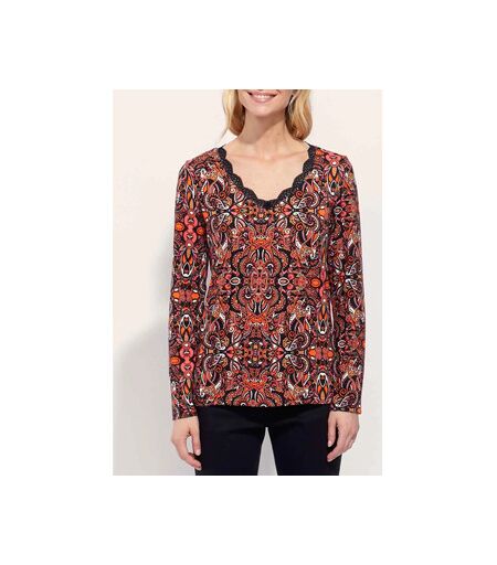 Blouses La Fiancee Du Mekong Top imprimé maille chaude dentelle TAMA Orange