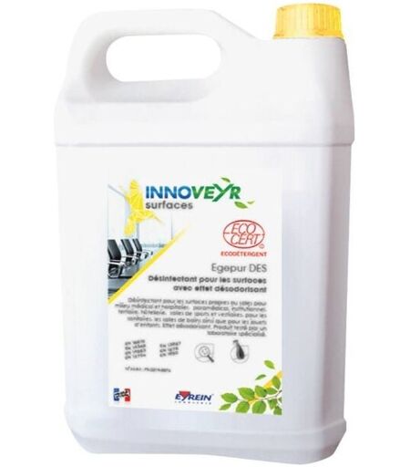 Le Bidon 5L désinfectant de surfaces EYREIN - 57625 est une solution de nettoyage efficace, spécialement conçue pour désinfecter les surfaces dans divers milieux, allant du médical à l'hôtellerie. Ce produit puissant assure une propreté irréprochable et une protection contre les agents pathogènes, parfait pour maintenir des standards d'hygiène élevés.Ce désinfectant, adapté aux environnements médicaux, hospitaliers et institutionnels, s'utilise sur des surfaces propres ou sales, garantissant une efficacité optimale même dans des conditions difficiles. Grâce à sa composition spécifique, il agit rapidement pour éliminer les virus et bactéries, confirmant sa conformité à la norme virucide EN 14476. Avec un pH compris entre 3,3 et 4,3, ce produit est sécurisé pour une utilisation sur diverses surfaces, y compris les sanitaires, salles de bains et jouets d'enfants. Sa densité de 1,01 assure une bonne adhérence et efficacité sur toutes les surfaces désinfectées.Pour maximiser son ...
