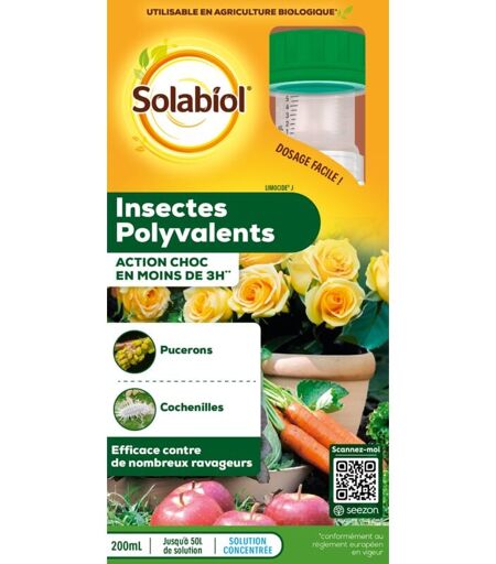 SOLABIOL Anti Insectes Polyvalents - Action Rapide - Effets Visibles En 3h - 200ml - Pucerons Cochenilles Aleurodes - Utilisable En Agriculture Biologique