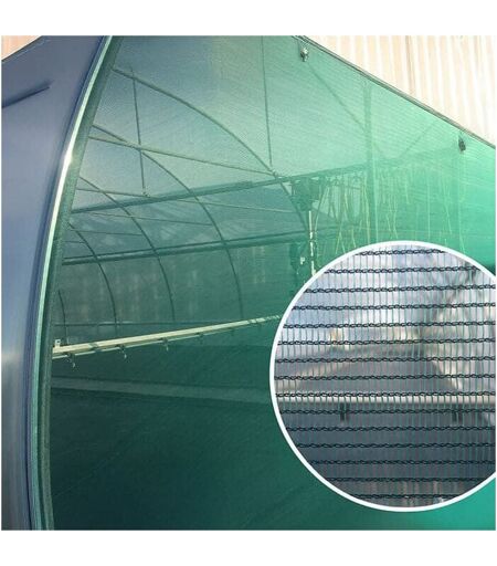 Filet Brise-vent vert - 106 gr/m²Ce filet est utilisé comme brise vent (50%) ou bien comme ombrage (40%).Le filet brise vent permet de garder des façades ou des aérations ouvertes sans que trop de vent pénètre dans la serre. (voir schéma ci-dessous)Il peut aussi servir de filet d'ombrage grâce à ses 40% d'occultation. Ce qui permettra de faire baisser la température dans votre serre.Caractéristiques50% brise vent40% d'ombrage106 gr/m²Matière: Polyéthylène haute densité PEHD, tricoté en mono-fileGarantie anti-UV 5 ans ...