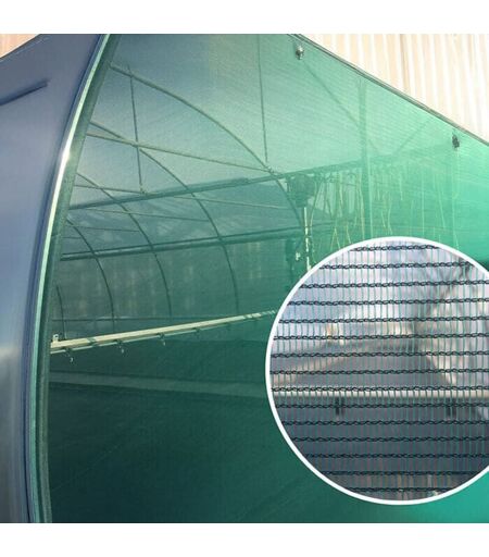 Filet Brise-vent vert - 106 gr/m²Ce filet est utilisé comme brise vent (50%) ou bien comme ombrage (40%).Le filet brise vent permet de garder des façades ou des aérations ouvertes sans que trop de vent pénètre dans la serre. (voir schéma ci-dessous)Il peut aussi servir de filet d'ombrage grâce à ses 40% d'occultation. Ce qui permettra de faire baisser la température dans votre serre.Caractéristiques50% brise vent40% d'ombrage106 gr/m²Matière: Polyéthylène haute densité PEHD, tricoté en mono-fileGarantie anti-UV 5 ans ...