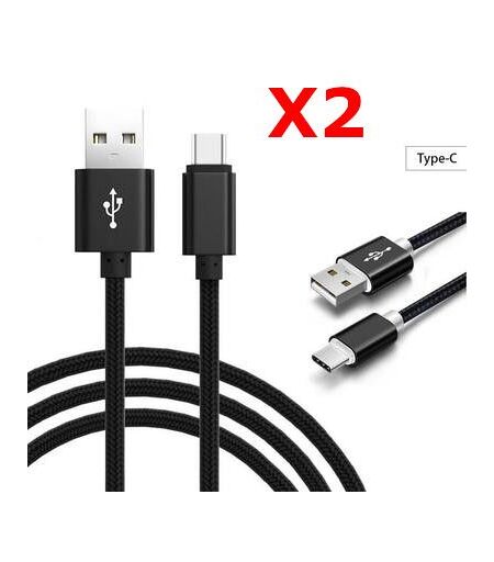 Little Boutik X2 Câble Metal Nylon Renforcé Chargeur Usb/Type C Longueur 2m Couleur Noir Compatible Samsung Lg Sony Wiko Blackberry Motorola Asus Huawei Honor Xiaomi Oppo Archos Teeno X2 Couleur :