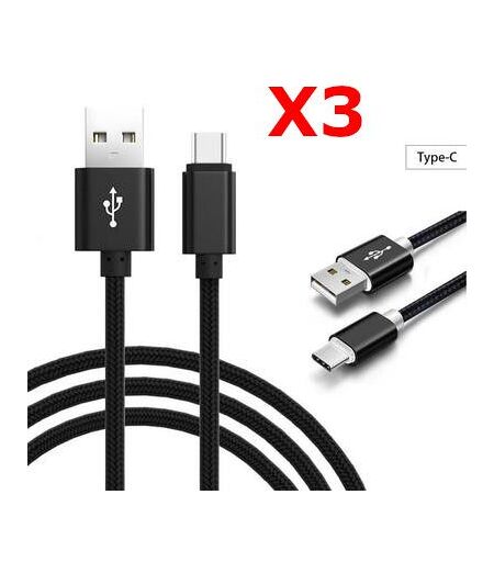 Little Boutik X3 Câble Metal Nylon Renforcé Chargeur Usb/Type C Longueur 2m Couleur Noir Compatible Samsung Lg Sony Wiko Blackberry Motorola Asus Huawei Honor Xiaomi Oppo Archos Teeno X3 Couleur :