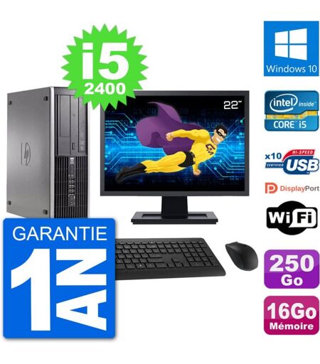 PC HP Compaq 6200 Pro SFF Ecran 22" i5-2400 RAM 16Go 250Go Windows 10 Wifi