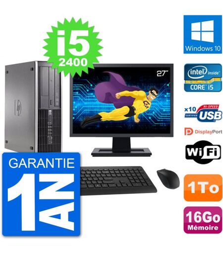PC HP Compaq 6200 Pro SFF Ecran 27" i5-2400 RAM 16Go Disque 1To Windows 10 Wifi