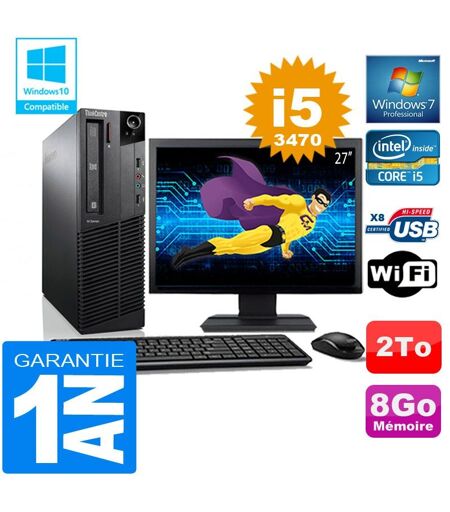 PC Lenovo M92p SFF Core I5-3470 Ram 8Go Disque 2 To Wifi W7 Ecran 27