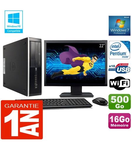 PC HP Compaq 8300 SFF Intel G850 Ram 16Go Disque 500 Go Wifi W7 Ecran 22