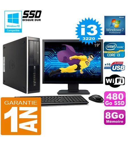 PC HP Compaq 8300 SFF Core I3-3220 Ram 8Go Disque 480 Go SSD Wifi W7 Ecran 19