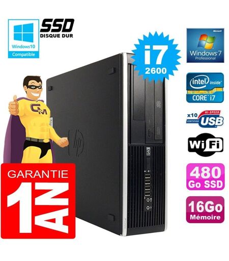 PC HP Compaq 8300 SFF Core I7-2600 Ram 16Go Disque 480Go SSD Graveur DVD Wifi W7