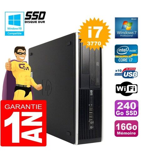 PC HP Compaq 8300 SFF Core I7-3770 Ram 16Go Disque 240Go SSD Graveur DVD Wifi W7