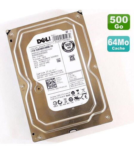 Marque: Western Digital / DELL Modèle : WD5003ABYX-18WERA0 1KWKJ Interface : SATA Format de Disque : 3.5" Interne Capacité : 500 Go Vitesse de rotation : 7200 RPM Taille du cache : 64 Mo Compatible avec Poweredge: 840, 860, SC1430, SC1435, 1900, 2900, 2950, 6850 (SAS 3.5"), R200, R210, R300, R310, R410, R510, R710, R900, R905, T110, T310, T410, T610, T710 Compatible avec Precision: 390, 490, 690, T3400, T5400, T5500, T7400, T7500 Compatible avec Powervault: MD1000, MD1200, MD3000i, MD3000, MD3200i, MD3200 Produit de seconde main testé. ...