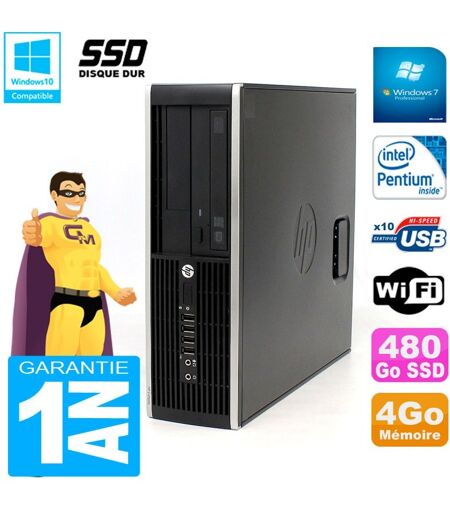 PC HP Compaq Pro 6200 SFF Intel G840 RAM 4Go 480 Go SSD Graveur DVD Wifi W7