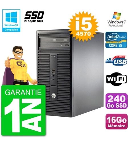 PC HP 280 G1 MT Core I5-4570 RAM 16Go Disque 240 Go SSD Graveur DVD Wifi W7
