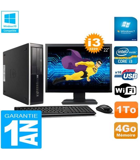 PC HP Compaq Pro 6300 SFF I3-3220 4Go 1To Graveur DVD Wifi W7 Ecran 22