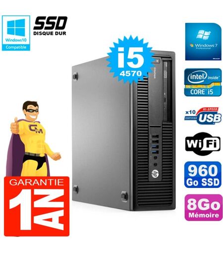 PC HP EliteDesk 800 G1 SFF Core I5-4570 RAM 8Go 960 Go SSD Graveur DVD Wifi W7