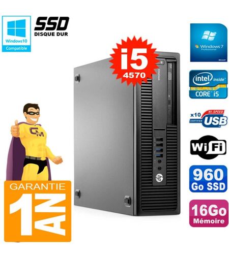 PC HP EliteDesk 800 G1 SFF Core I5-4570 RAM 16Go 960 Go SSD Graveur DVD Wifi W7