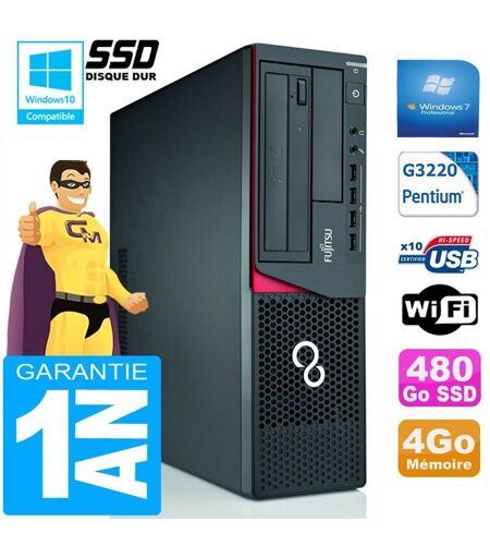 PC Fujitsu Esprimo E720 E85+ SFF G3220 RAM 4Go Disque 480 Go SSD Wifi W7