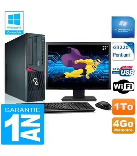 PC Fujitsu Esprimo E720 E85+ SFF G3220 RAM 4Go Disque 1 To Wifi W7 Ecran 27