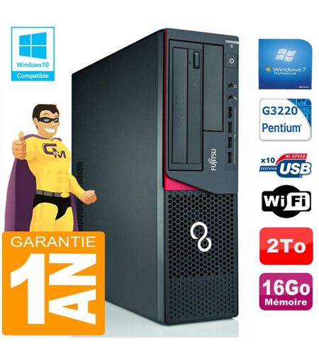PC Fujitsu Esprimo E720 E85+ SFF G3220 RAM 16Go Disque 2 To Wifi W7