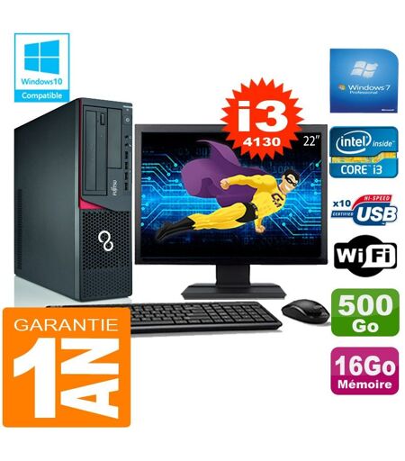 PC Fujitsu Esprimo E720 E85+ SFF I3-4130 RAM 16Go Disque 500Go Wifi W7 Ecran 22