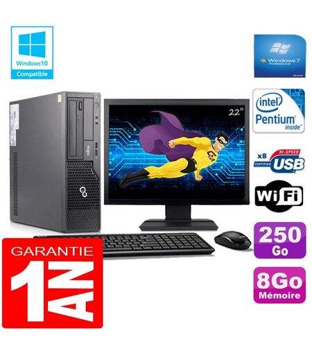 PC Fujitsu Esprimo E500 E85+ SFF G640 RAM 8Go Disque 250Go Wifi W7 Ecran 22