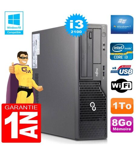 PC Fujitsu Esprimo E500 E85+ SFF Core I3-2100 RAM 8Go Disque 1 To Wifi W7