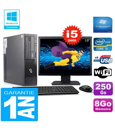 PC Fujitsu Esprimo E500 E85+ SFF I5-2400 RAM 8Go Disque 250Go Wifi W7 Ecran 19