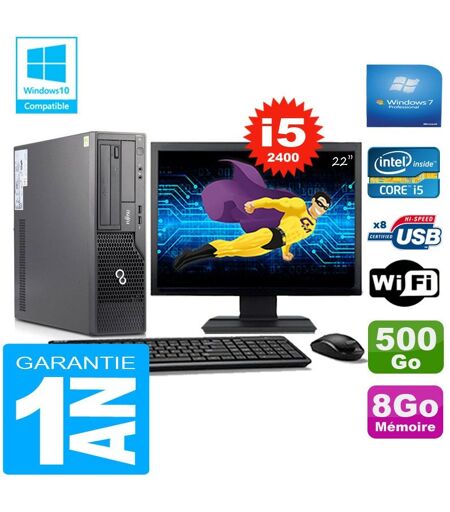 PC Fujitsu Esprimo E500 E85+ SFF I5-2400 RAM 8Go Disque 500Go Wifi W7 Ecran 22
