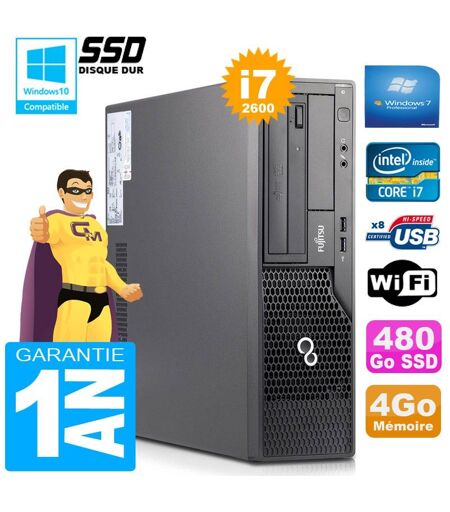 PC Fujitsu Esprimo E500 E85+ SFF Core I7-2600 RAM 4Go Disque 480 Go SSD Wifi W7