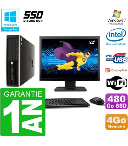 PC HP Compaq 8100 SFF Ecran 22" G6950 RAM 4Go SSD 480Go Graveur DVD Wifi W7
