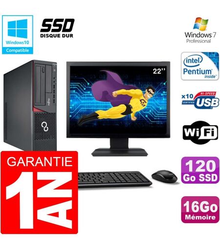 PC Fujitsu Esprimo E720 E85+ SFF Ecran 22'' G3220 RAM 16Go 120 Go SSD Wifi W7