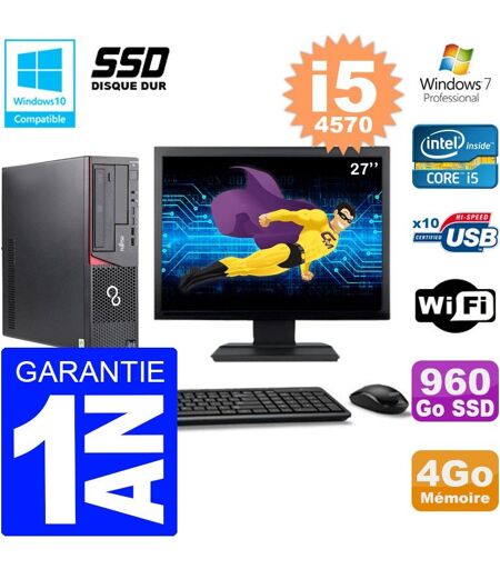 PC Fujitsu Esprimo E720 E85+ DT Ecran 27'' i5-4570 RAM 4Go 960 Go SSD Wifi W7
